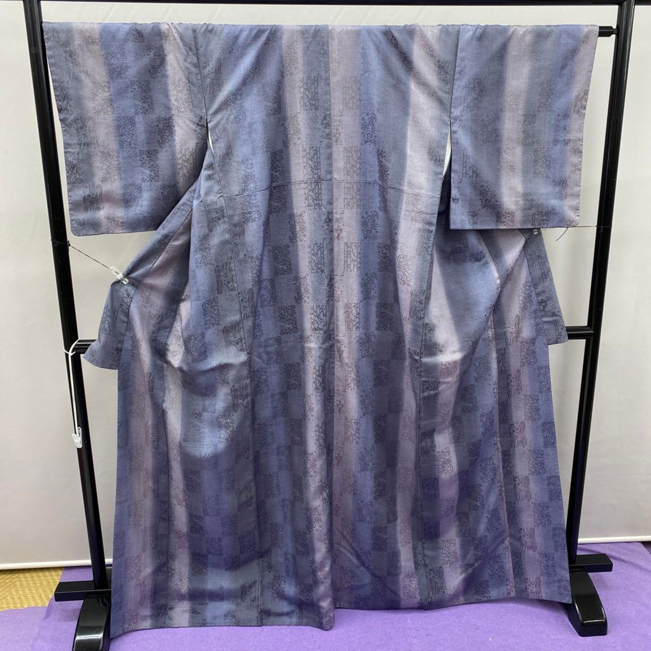 HOME > > 5496 ブルーグレー 紫 紬 着物 正絹 おしゃれ着 地模様 身幅ゆっくり 買取しました