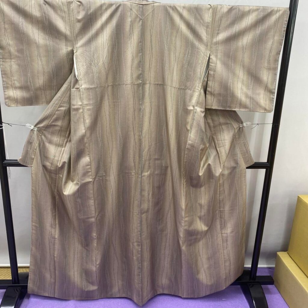 5791 よろけ縞 紬 着物 正絹 おしゃれ着 ベージュ系 買取しました