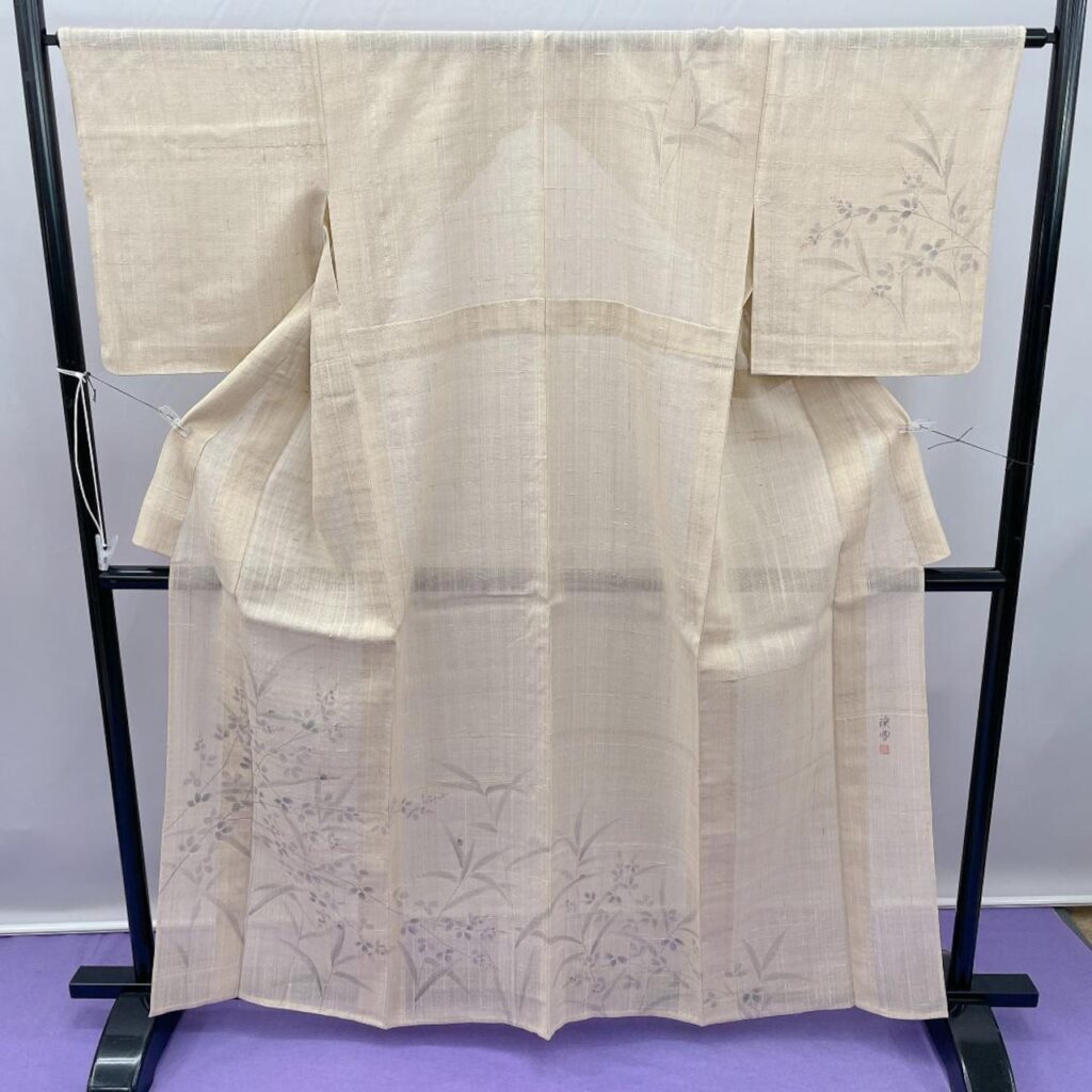 ★3130★ 訪問着 麻 夏物 薄茶色 渓雪 着物 和装 買取しました