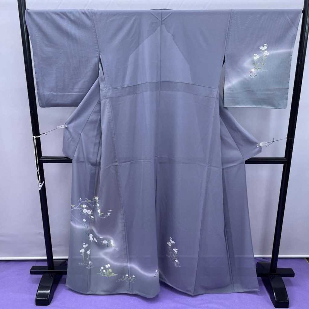 ★3146★ 絽 付け下げ訪問着 正絹 夏着物 グレー 花柄 買取しました