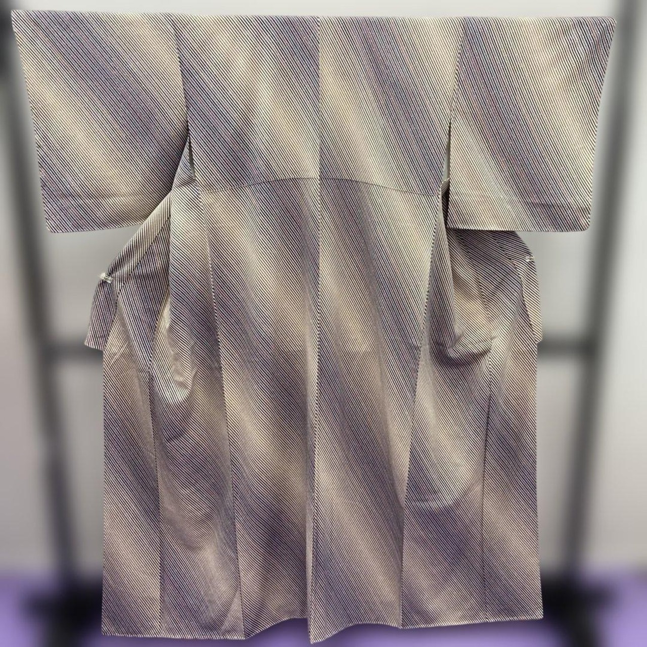 6386 ベージュ 紺色 ストライプ 小紋 着物 正絹 買取しました