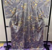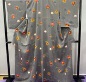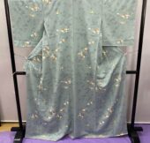 5424 灰青 花柄 小紋 着物 正絹 ...